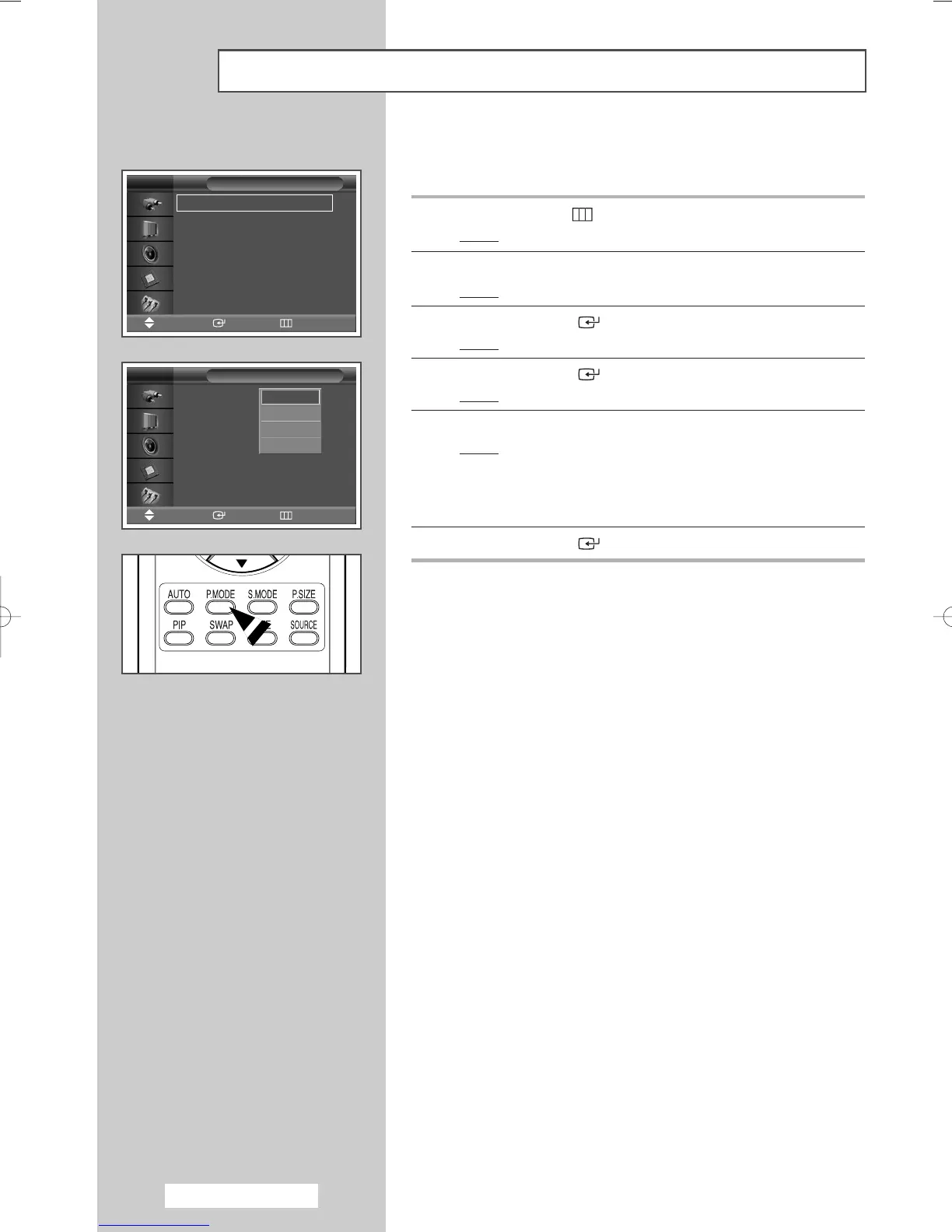 P.MODE (Picture Mode) button on the remote