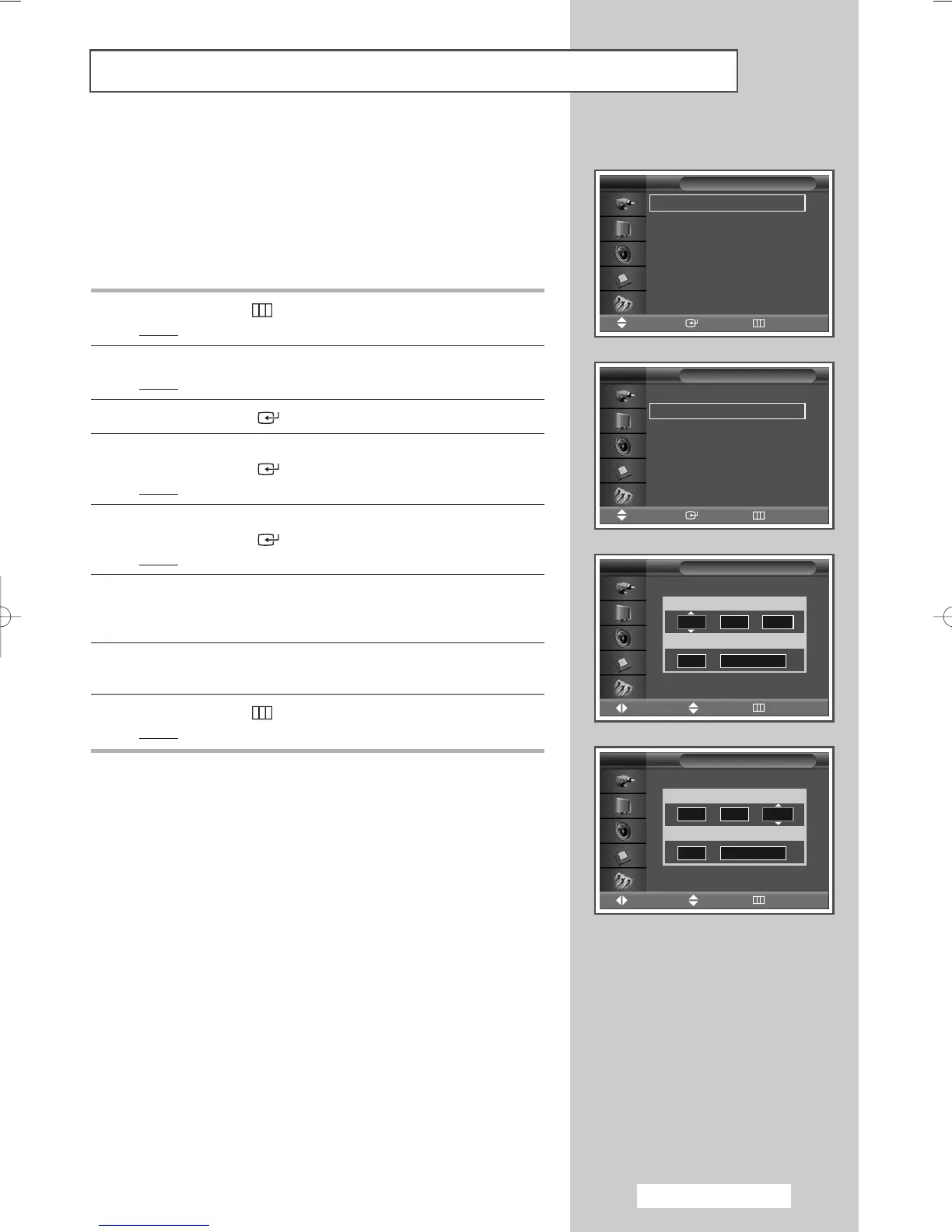 6 Select Hour, min, Activation, Volume, or Source by pressing the
