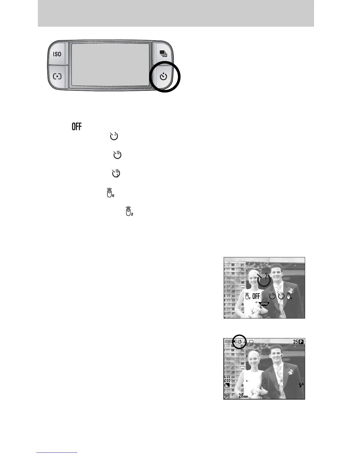 - Off ( ) : Self-timer function is off.