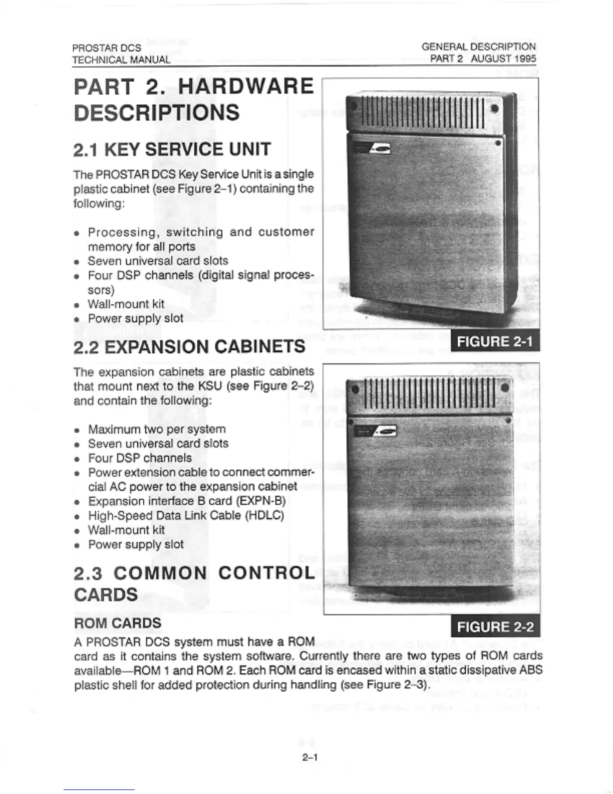 Samsung Prostar DCS - Hardware Descriptions; Key Service Unit; Expansion Cabinets; Common Control Cards