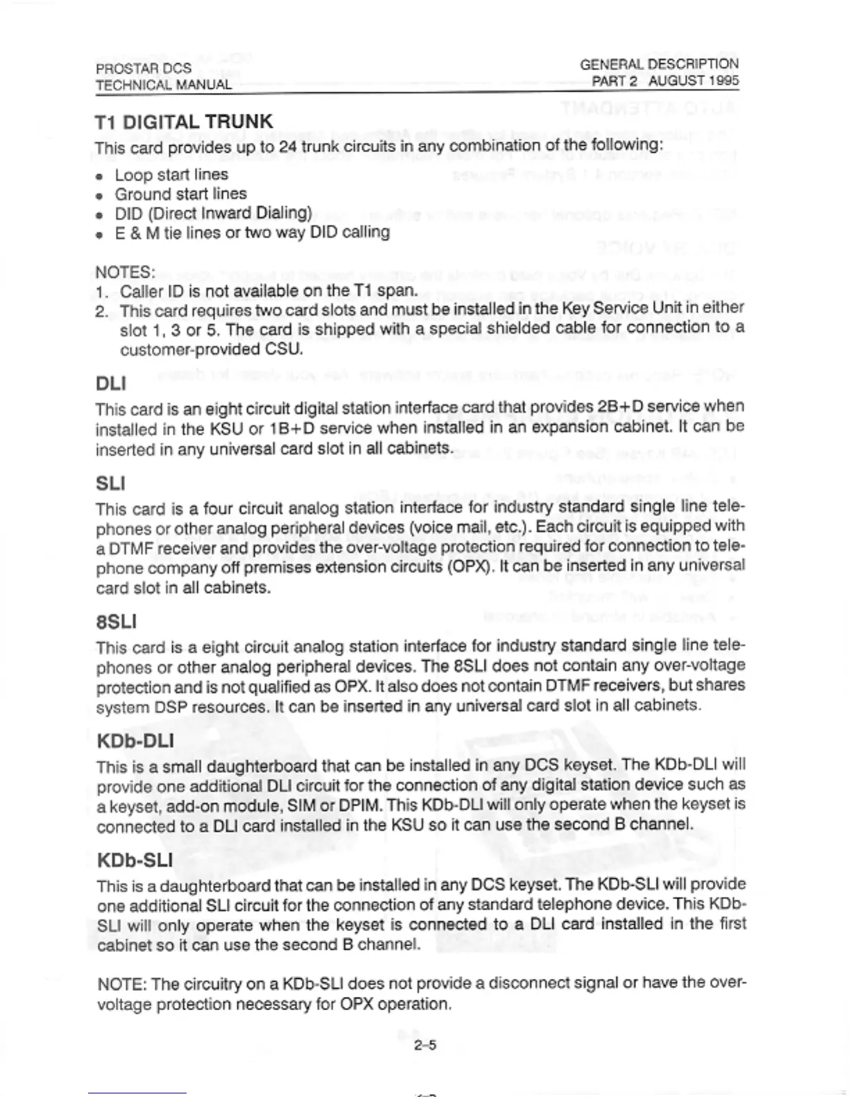 Samsung Prostar DCS - T1 Digital Trunk; Dli; Sli; 8 Sli