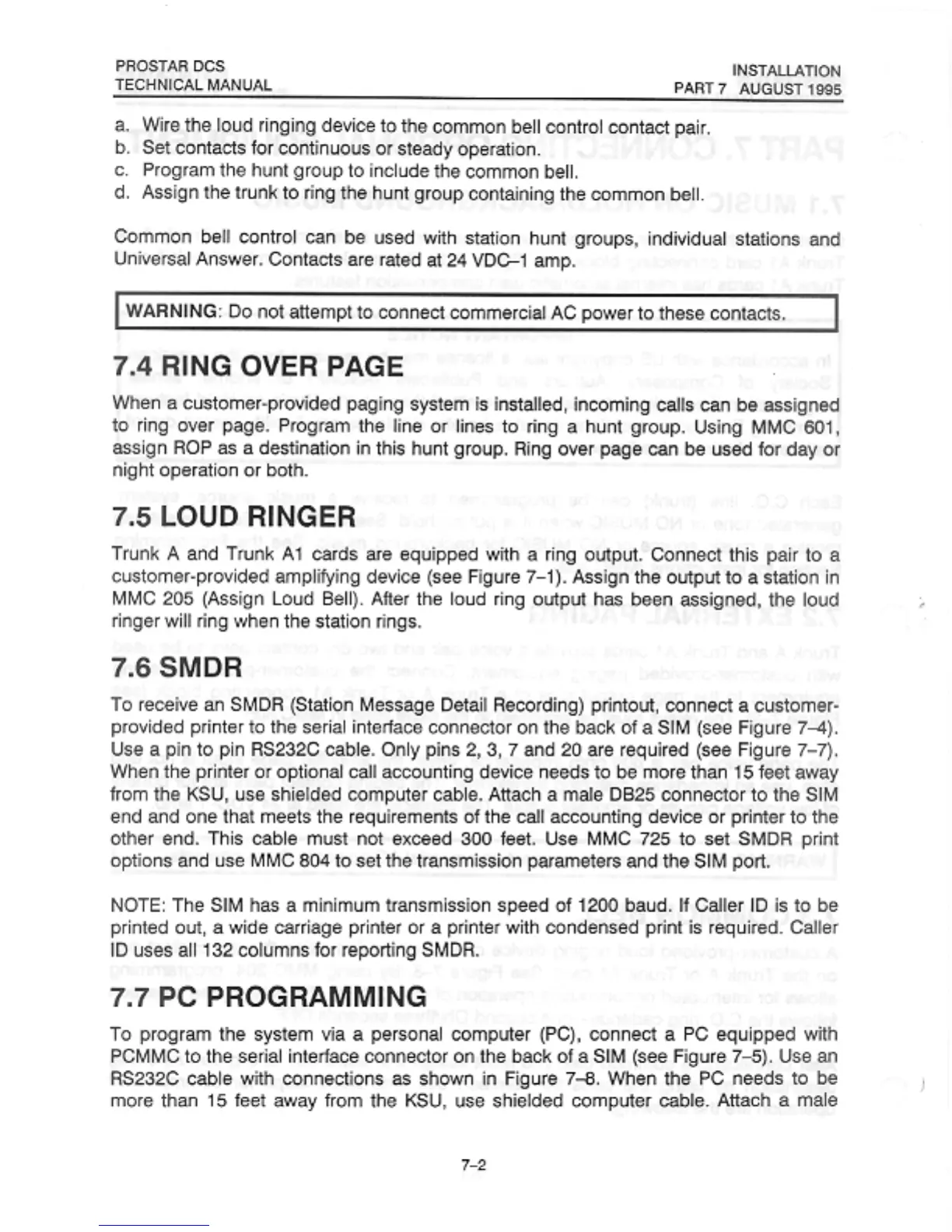 Samsung Prostar DCS - Ring over Page; Loud Ringer; Smdr; PC Programming