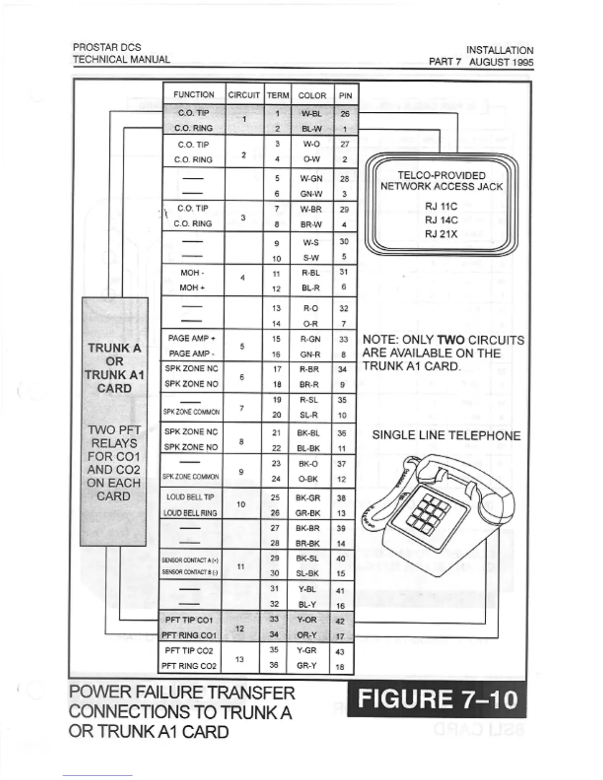 Samsung Prostar DCS - Power Failure Transfer Connections to Trunk a or Trunk A1 Card