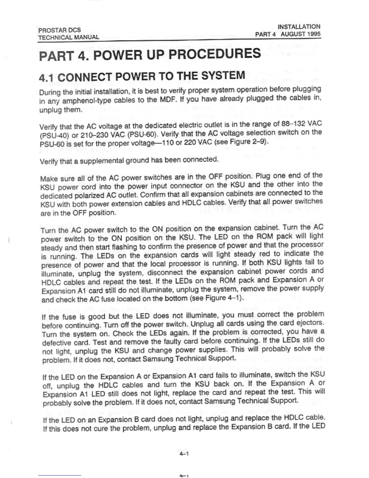 Samsung Prostar DCS - Power up Procedures; Connect Power to the System