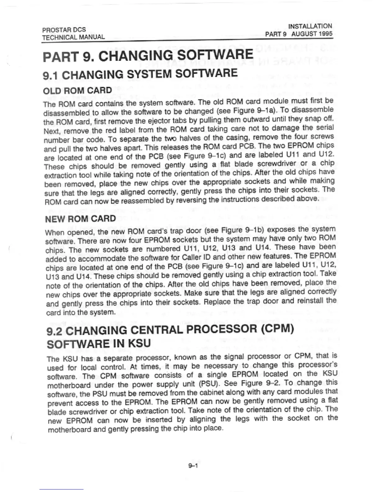 Samsung Prostar DCS - Changing Software; Changing System Software; Changing Central Processor (CPM) Software in KSU; Old ROM Card
