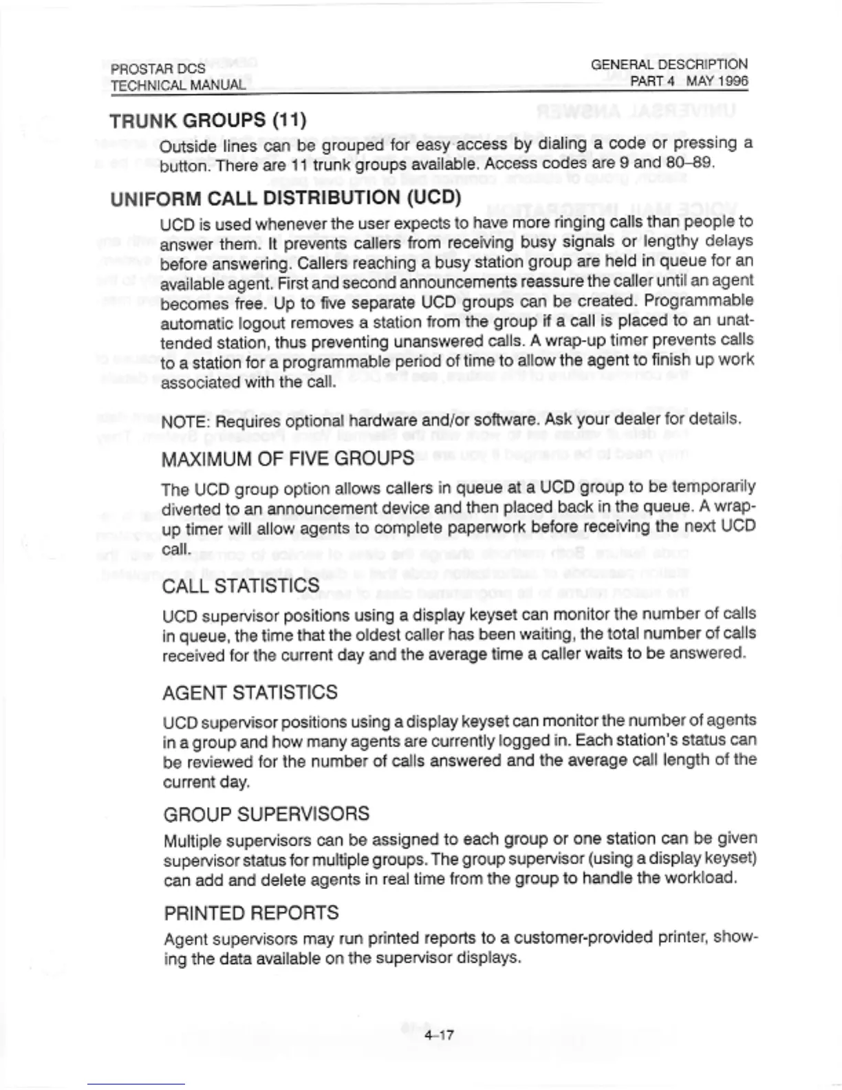 Samsung Prostar DCS - Trunk Groups (11); Uniform Call Distribution (UCD)
