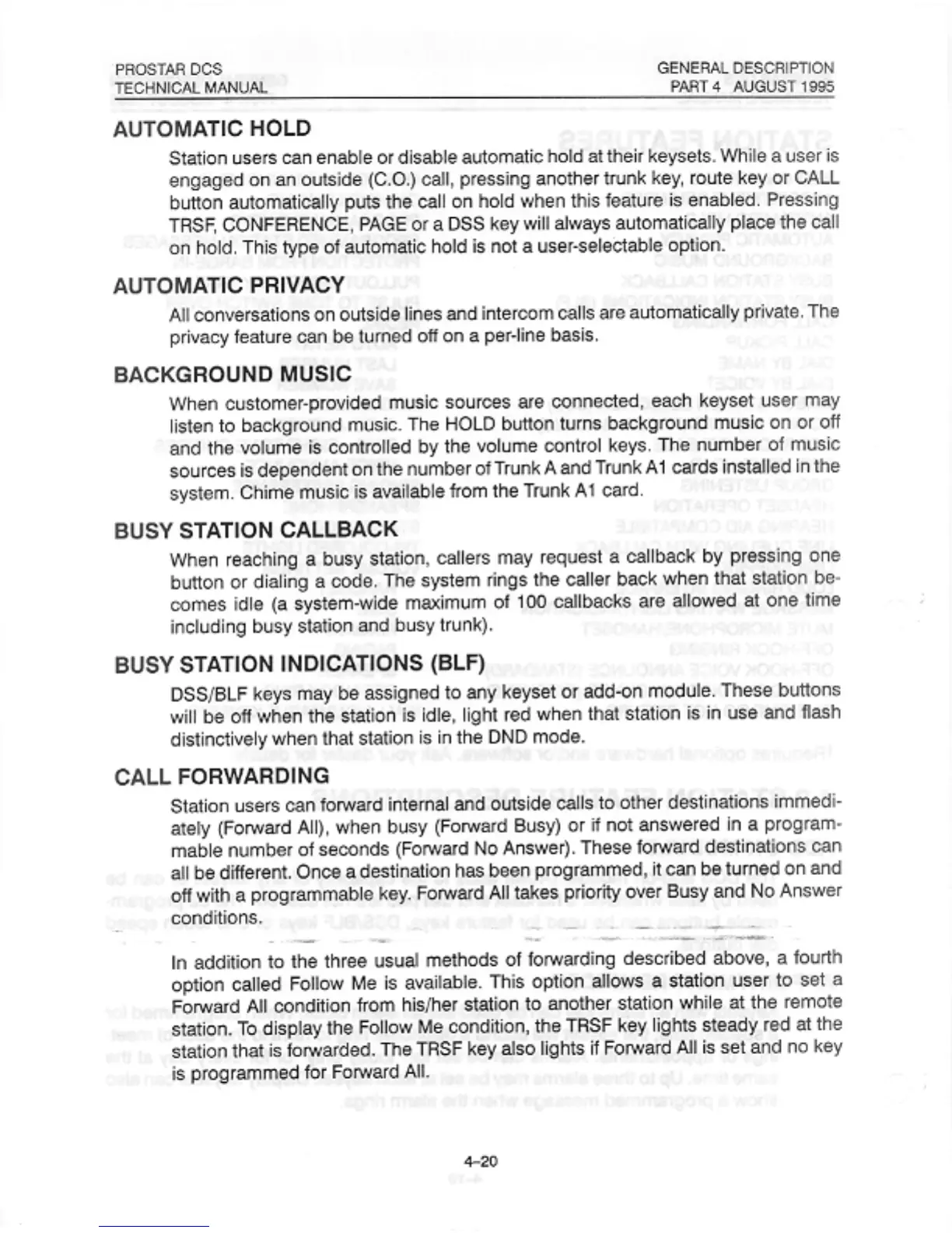 Samsung Prostar DCS - Automatic Privacy; Busy Station Callback; Busy Station Indications (BLF)