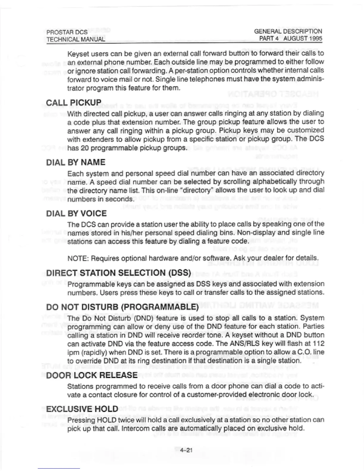 Samsung Prostar DCS - Dial by Name; Direct Station Selection (DSS); Do Not Disturb (Programmable); Door Lock Release