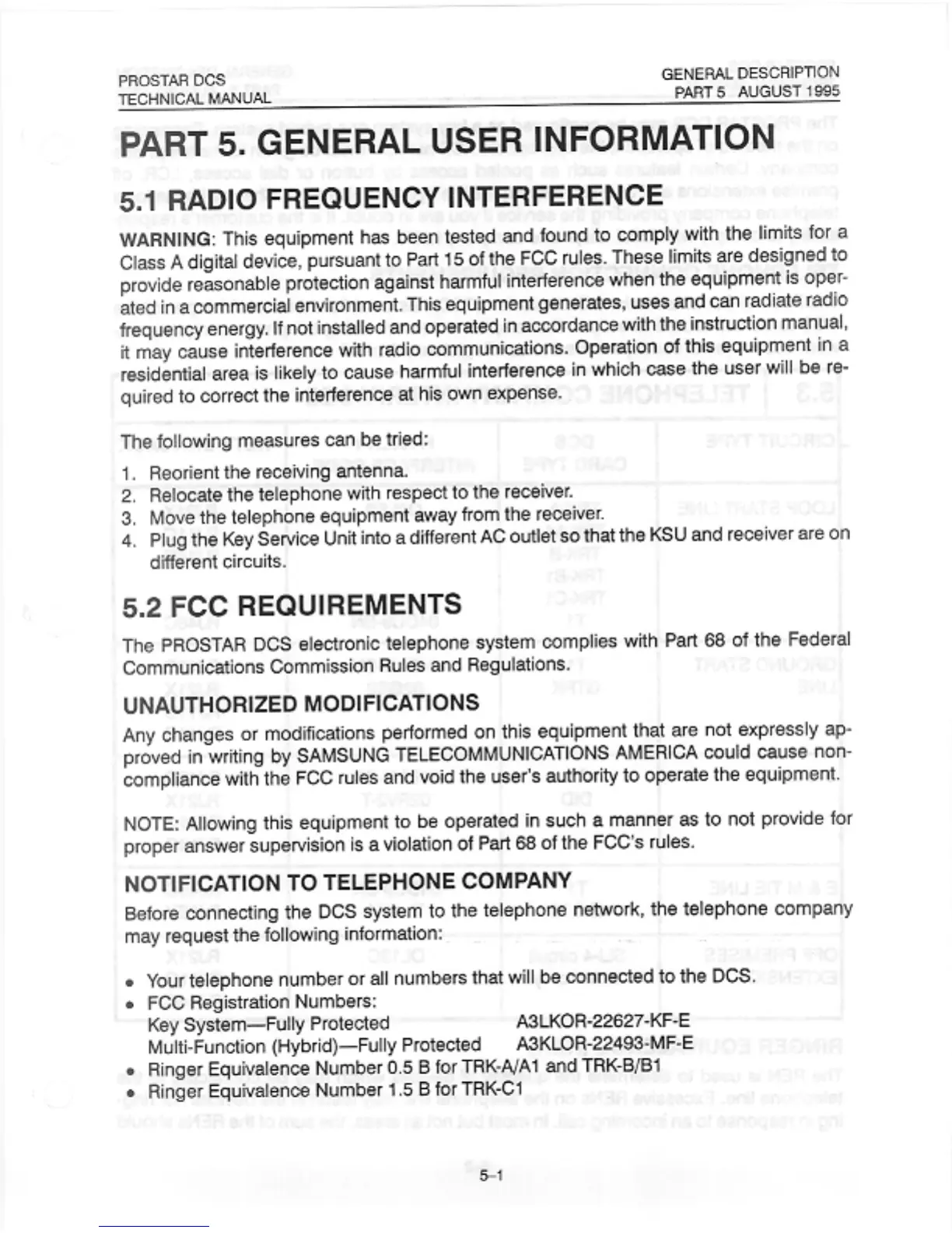 Samsung Prostar DCS - General User Information; Radio Frequency Interference; FCC Requirements