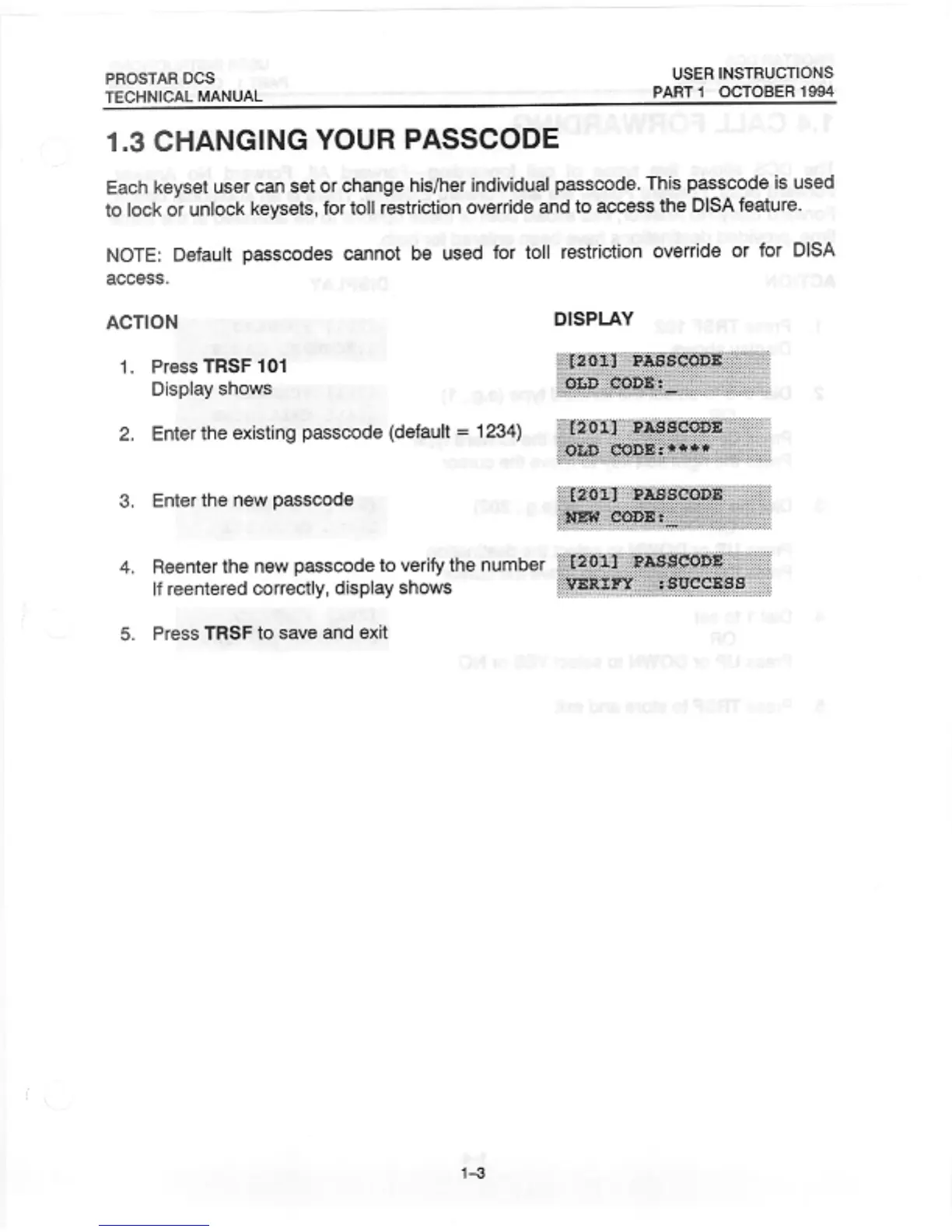 Samsung Prostar DCS - Changing Your Passcode