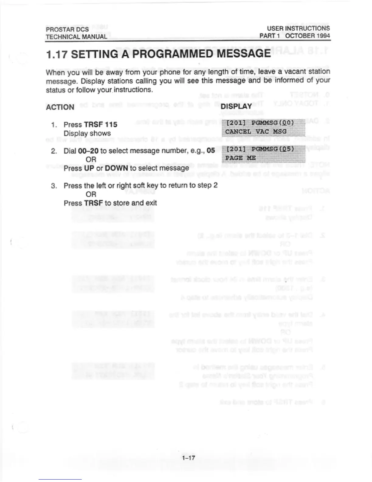 Samsung Prostar DCS - Setting a Programmed Message