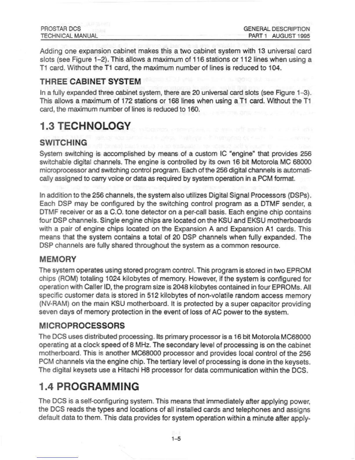 Samsung Prostar DCS - Technology; Programming; Switching; Memory