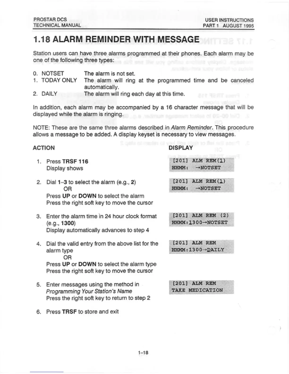 Samsung Prostar DCS - Alarm Reminder with Message