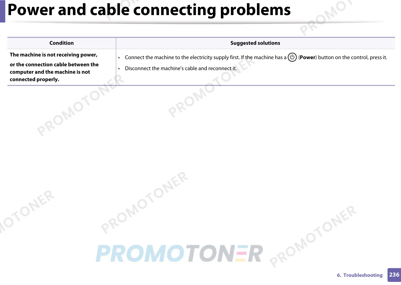 • Disconnect the machine’s cable and reconnect it.