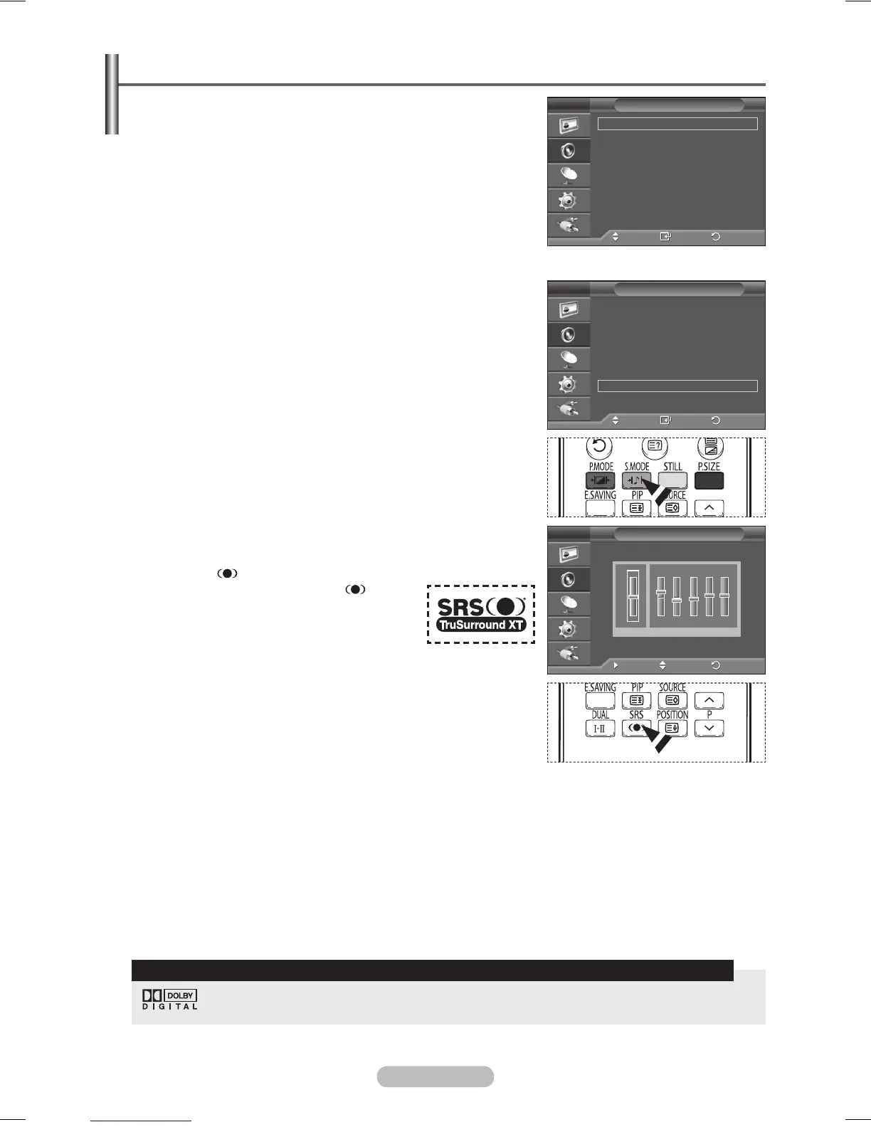 Mode, Equalizer, SRS TS XT, Auto Volume,