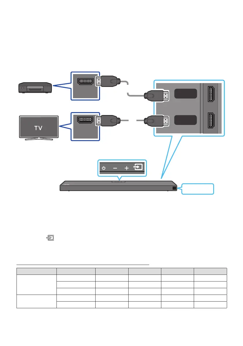 4. “HDMI” mode is displayed on the Soundbar display panel and sound plays.