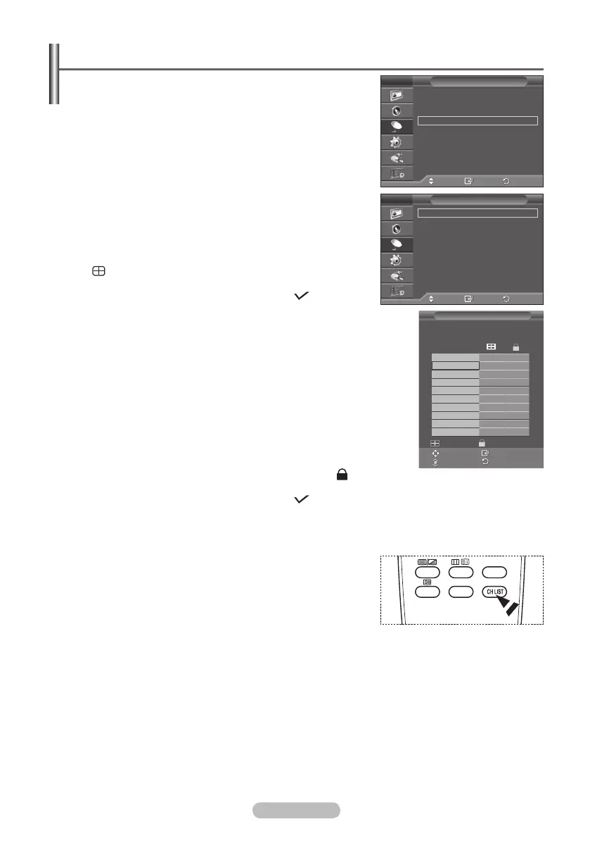 Če znova pritisnete gumb ENTER, znak ( ) poleg kanala izgine in zaklepanje kanala je
