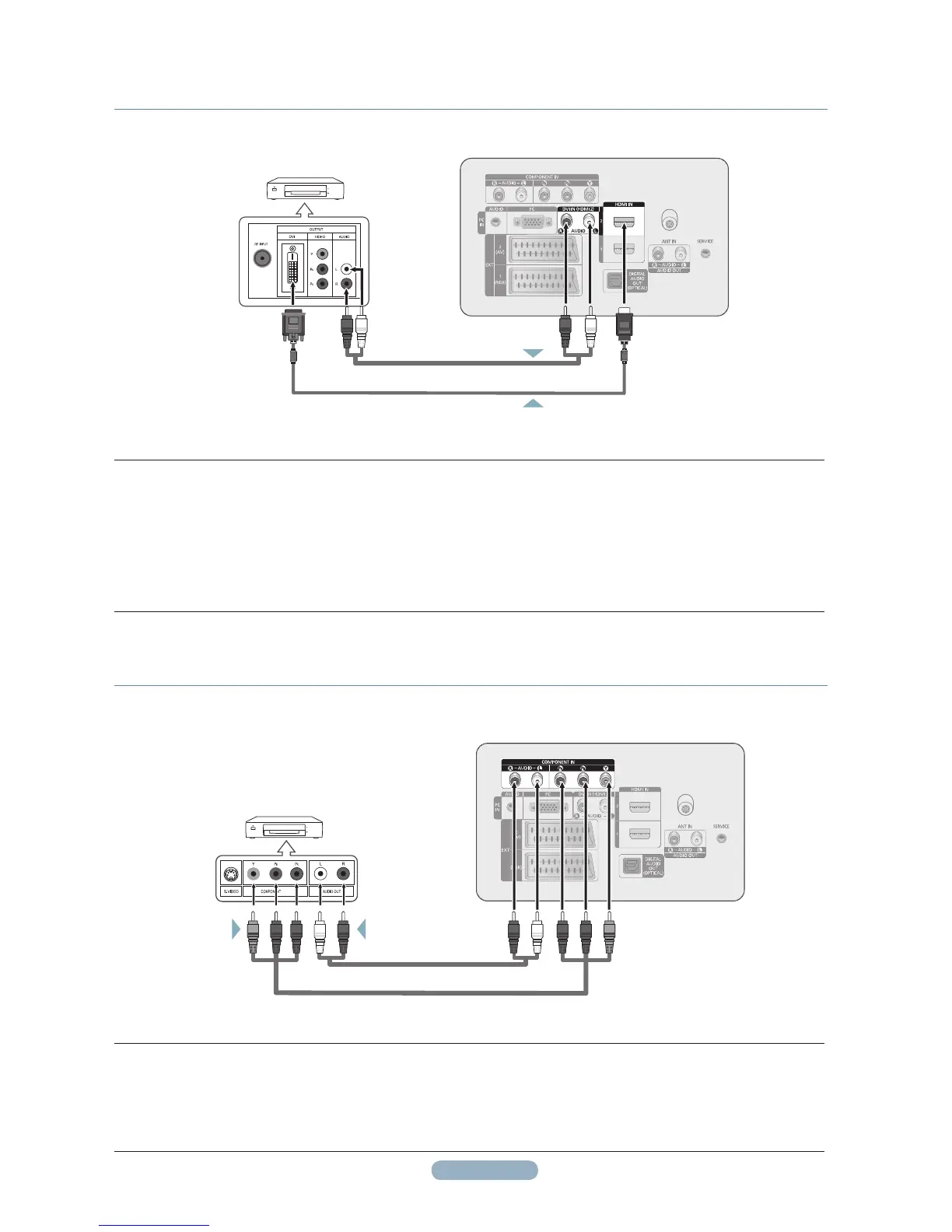 Connect Audio Cables(Not supplied) between the COMPONENT IN [R-AUDIO-L] jacks on the TV and the AUDIO OUT