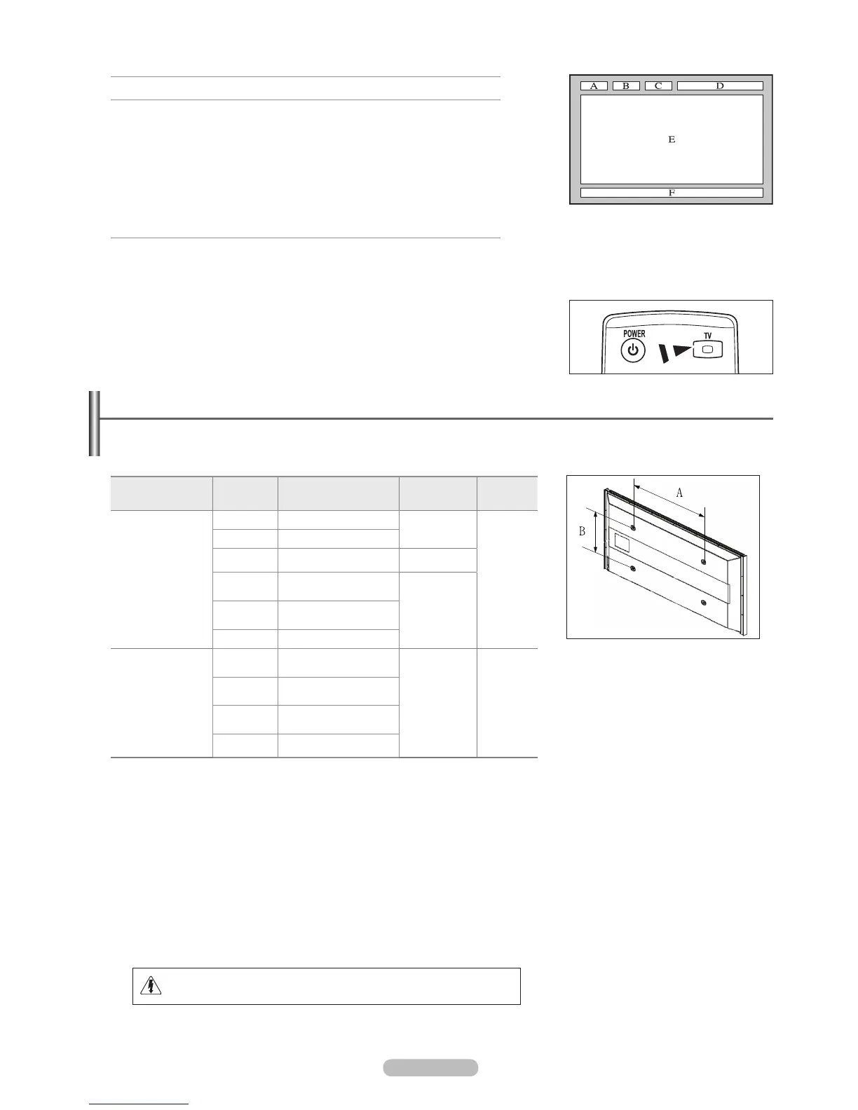 Do not use screws longer than the standard dimension, as they may cause damage to the inside of the TV set.