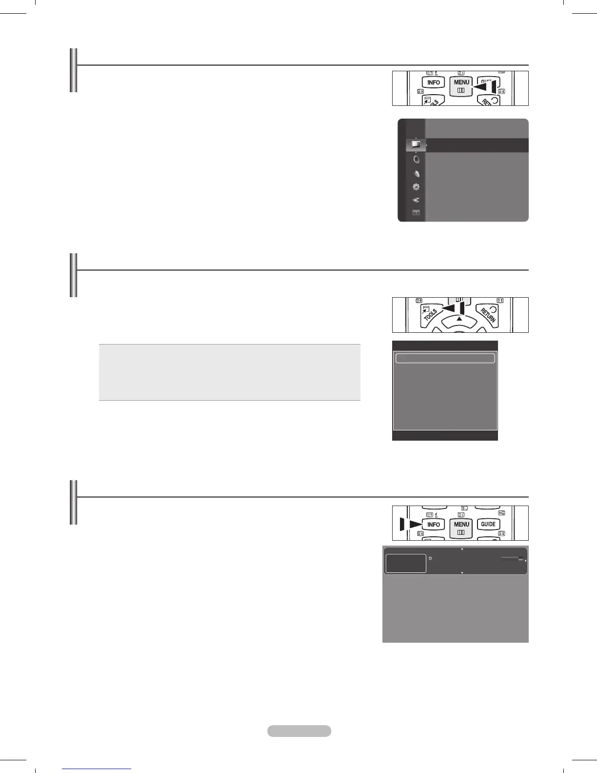 kanalu, vrsti zvuka i statusu neki postavki slike i zvuka.