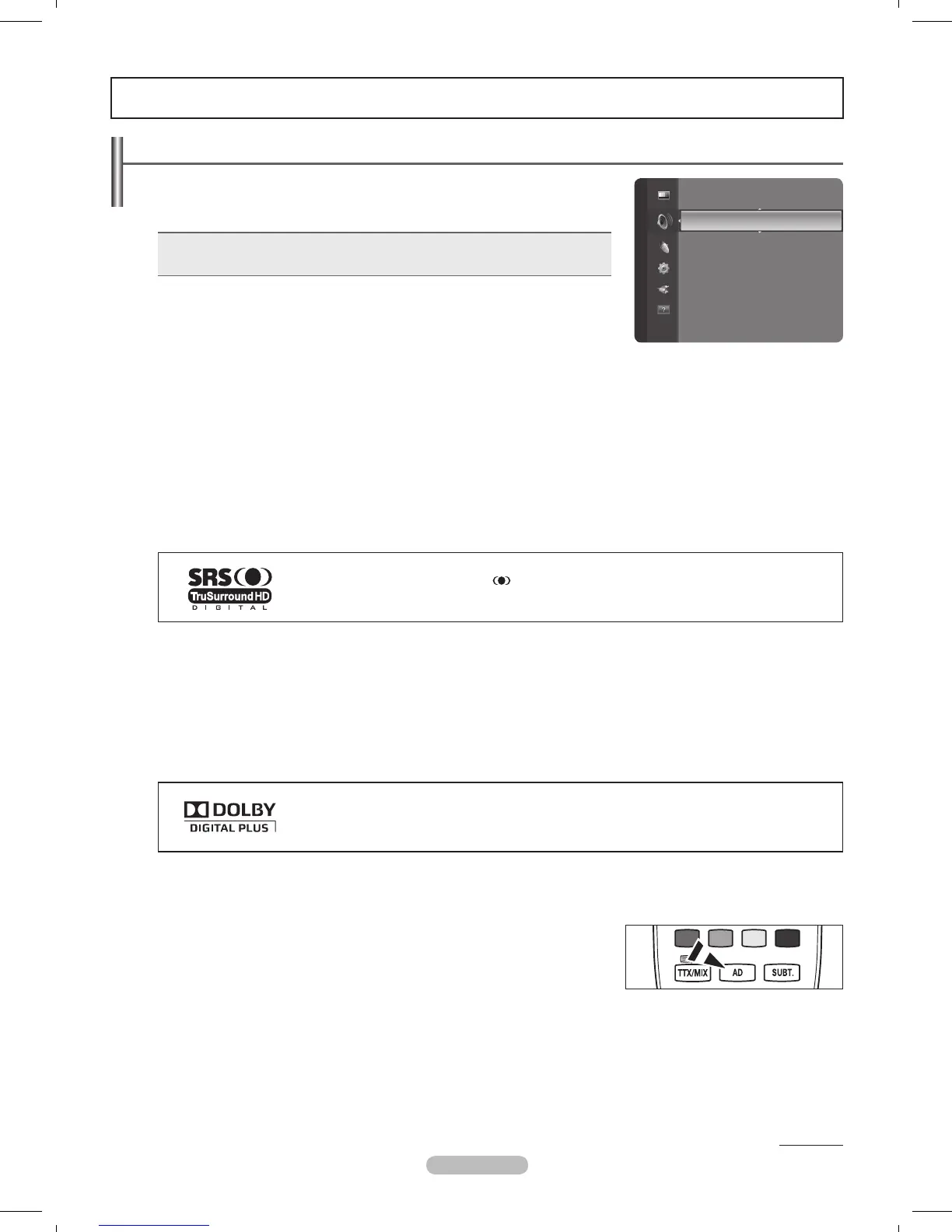 TruSurround HD koristi se u skladu s licencom tvrtke SRS Labs, Inc.