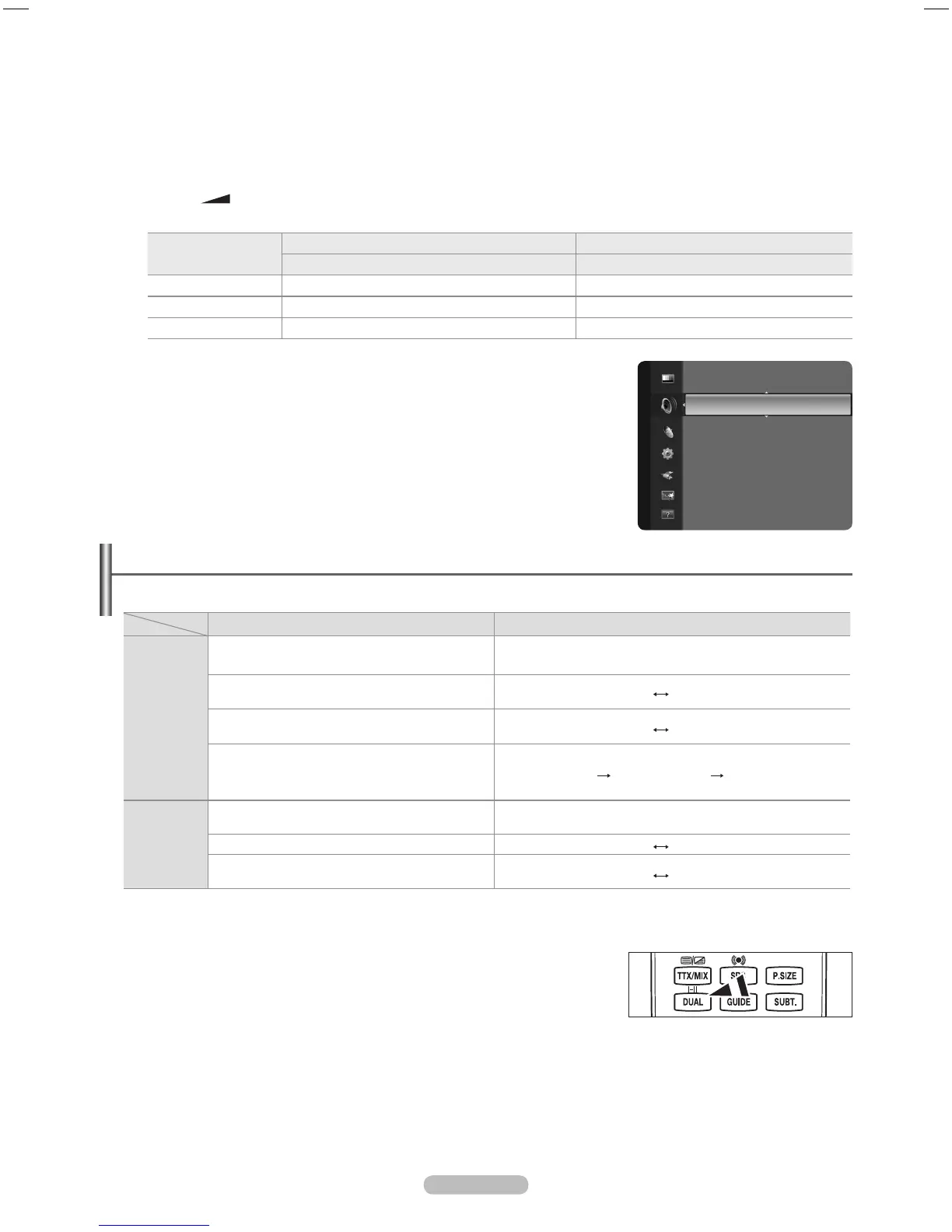 When you set to Dual l ll, the current sound mode is displayed on the screen.