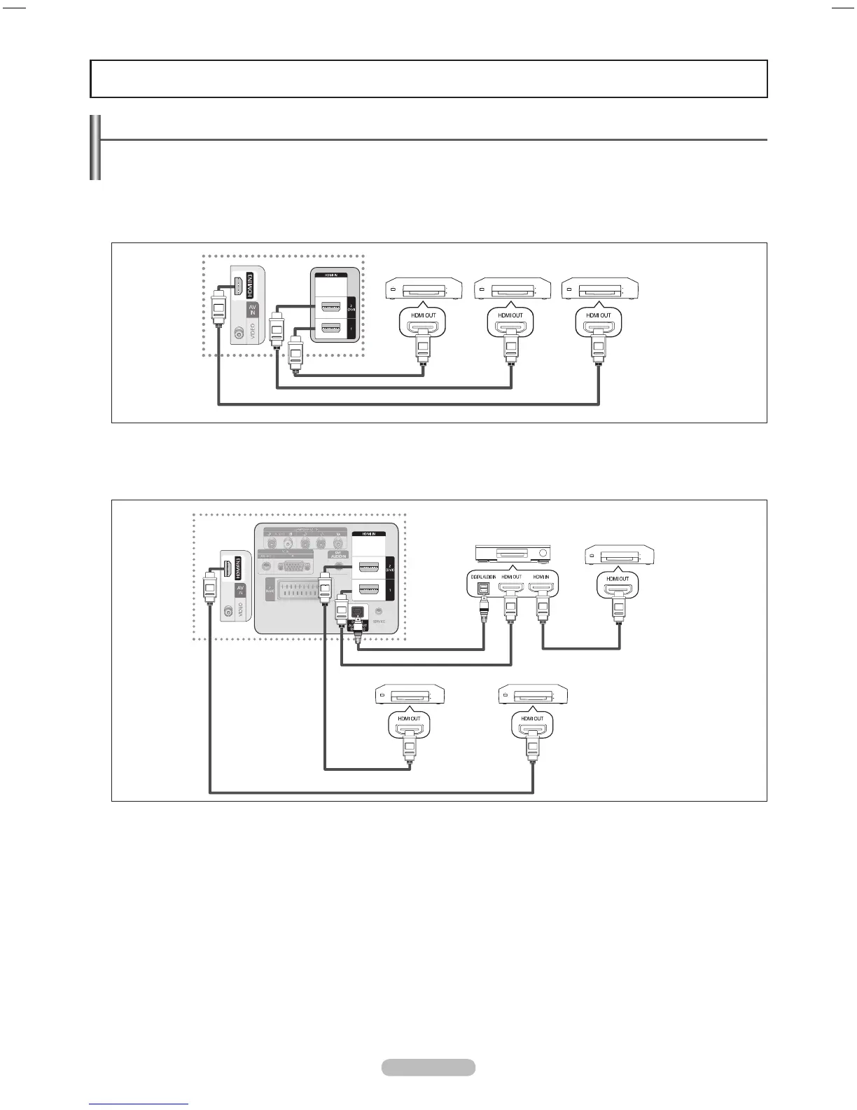 1. Connect the [HDMI IN 1], [HDMI IN 2(DVI)] or [HDMI IN 3] jack on the TV and the HDMI OUT jack of the corresponding Anynet