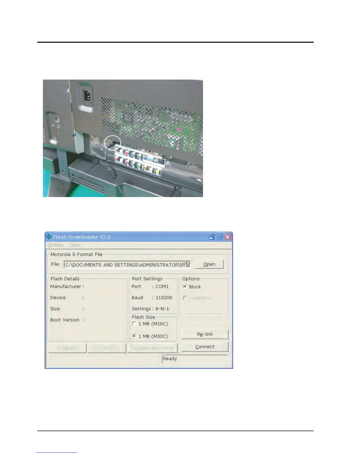 Connect Set (Service Jack) and Jig Cable to execute Program Update.