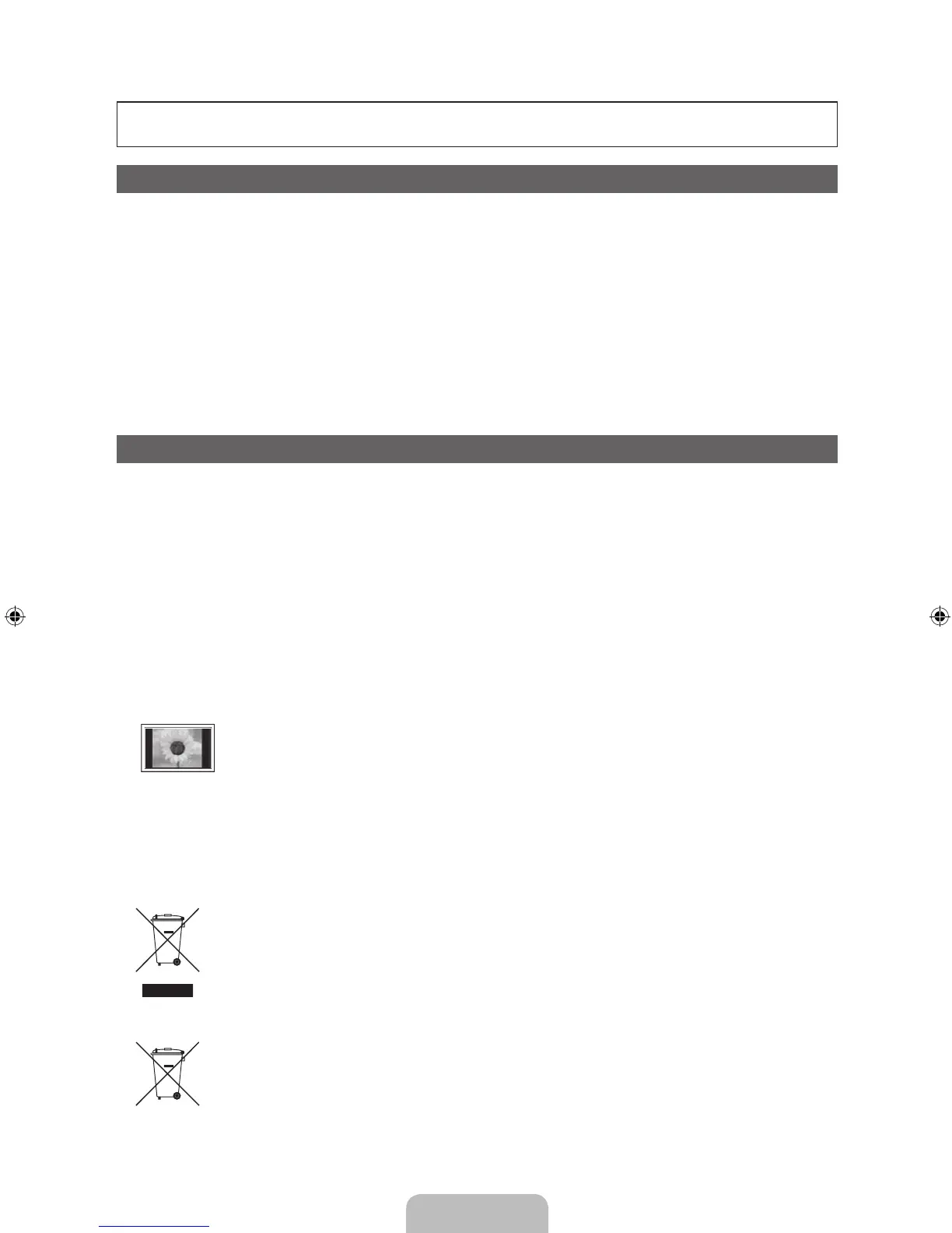 Watching the Plasma TV in 4:3 format for a long period of time may leave traces of borders displayed on the left, right and centre of