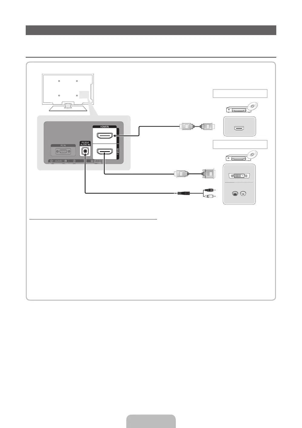 When using an HDMI/DVI cable connection, you must use the HDMI IN 1(DVI) jack for video. A DVD,