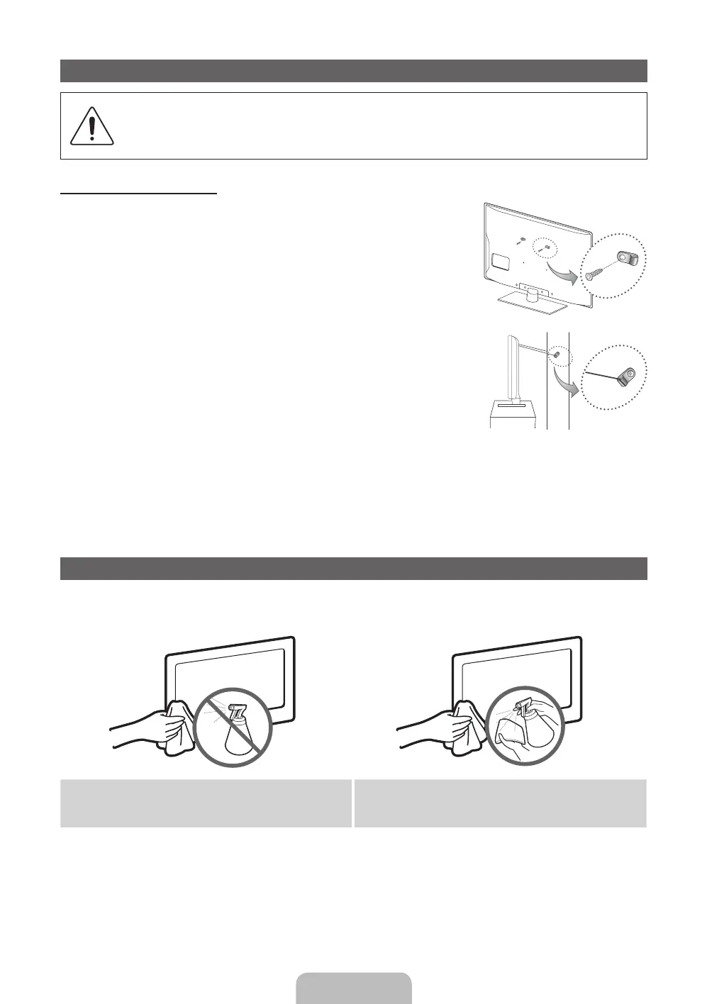 Caution: Pulling, pushing, or climbing onto the TV may cause the TV to fall. In particular, ensure