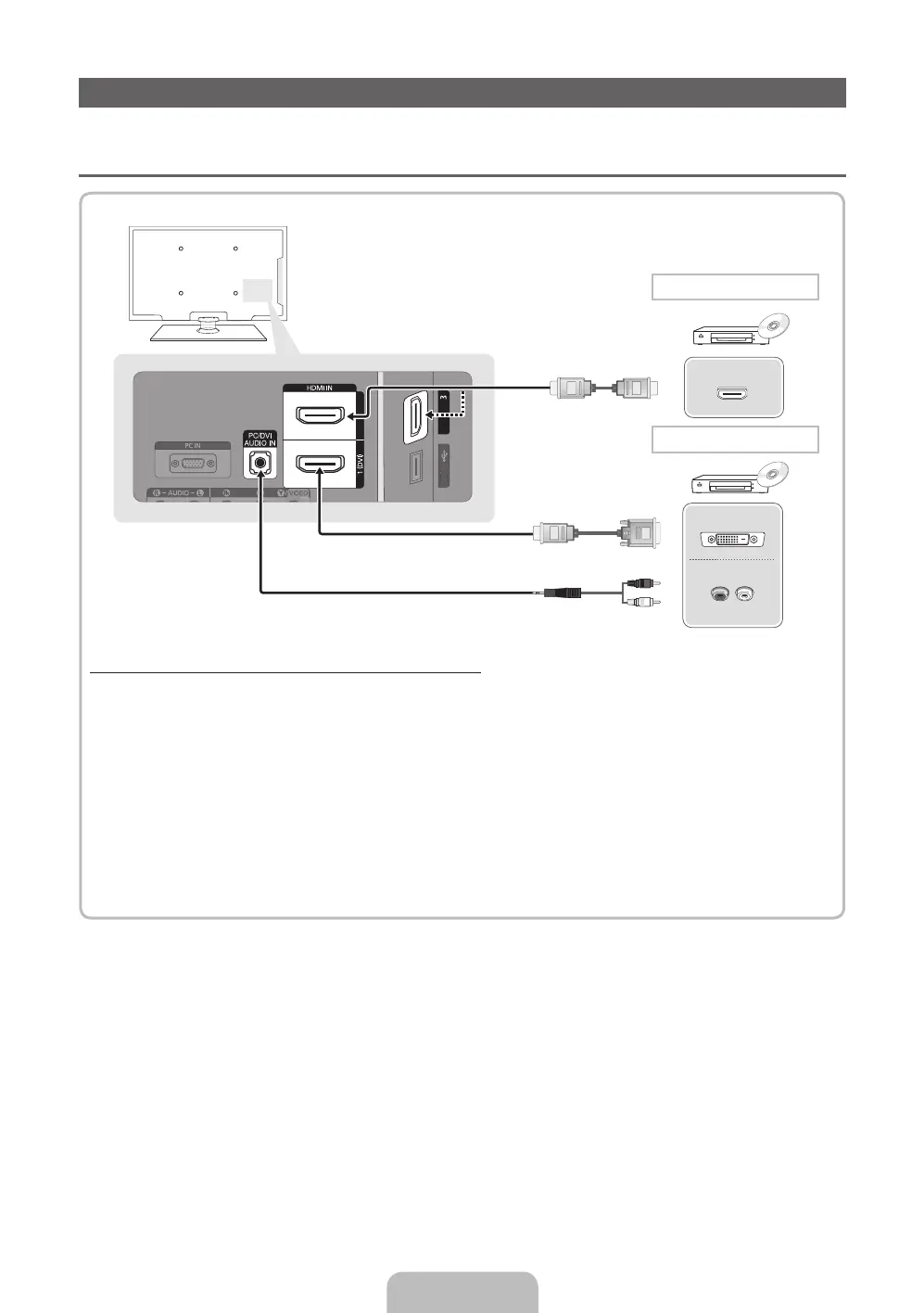 When using an HDMI/DVI cable connection, you must use the HDMI IN 1(DVI) jack for video. A DVD,