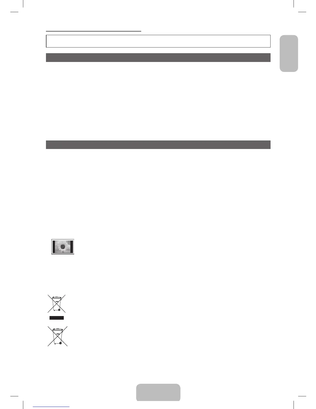 Watching the Plasma TV in 4:3 format for a long period of time may leave traces of borders displayed on the left, right and centre of the