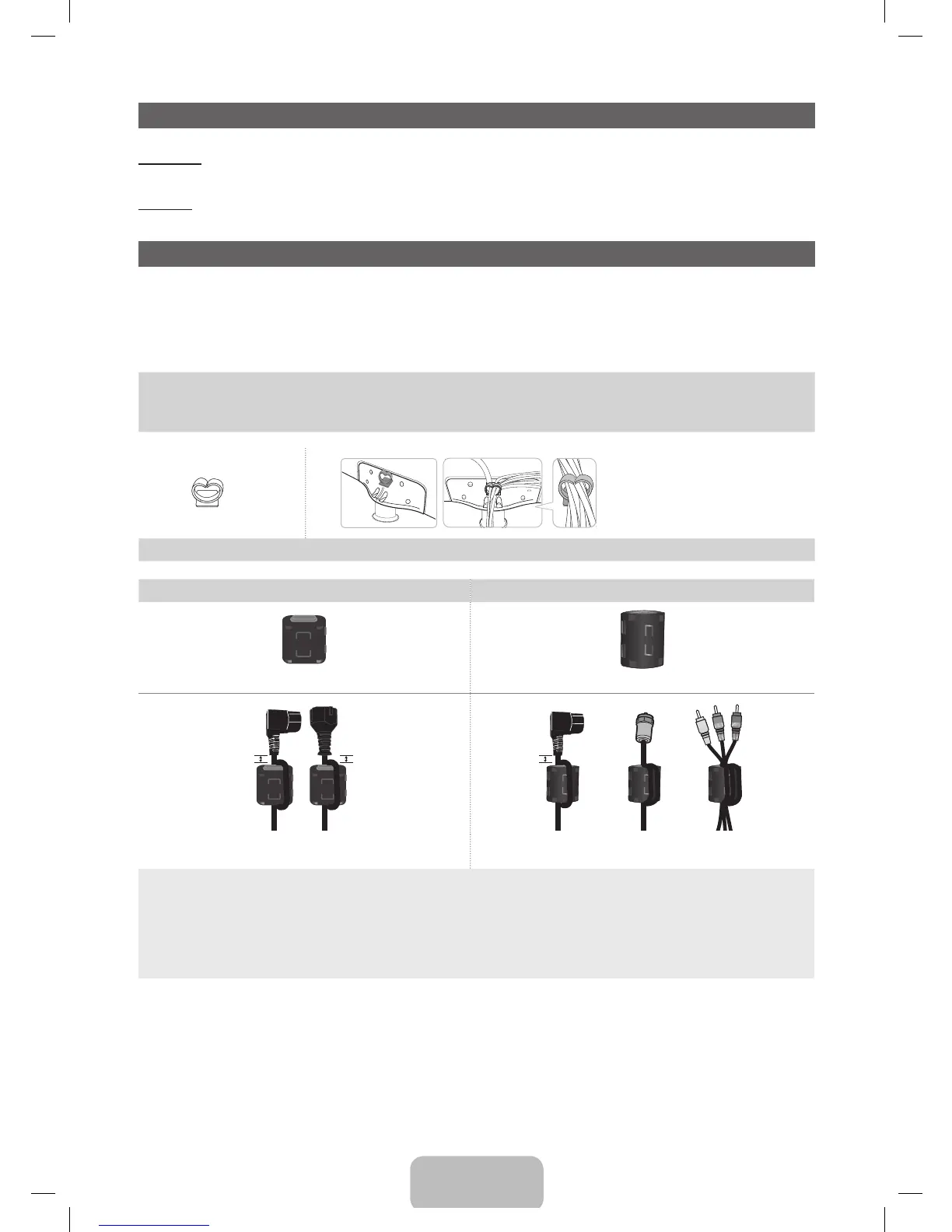 • A Maximum distance between the ferrite core and the end of the cord inserted in the TV: 3/4 inches