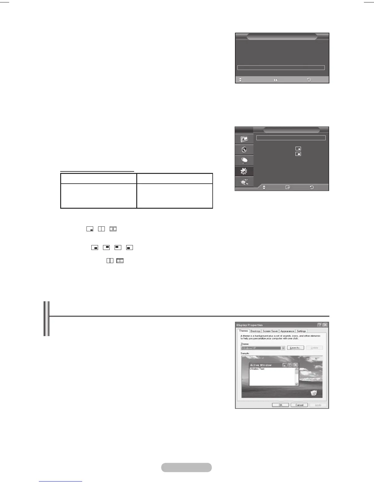 A PIP-beállítások táblázata