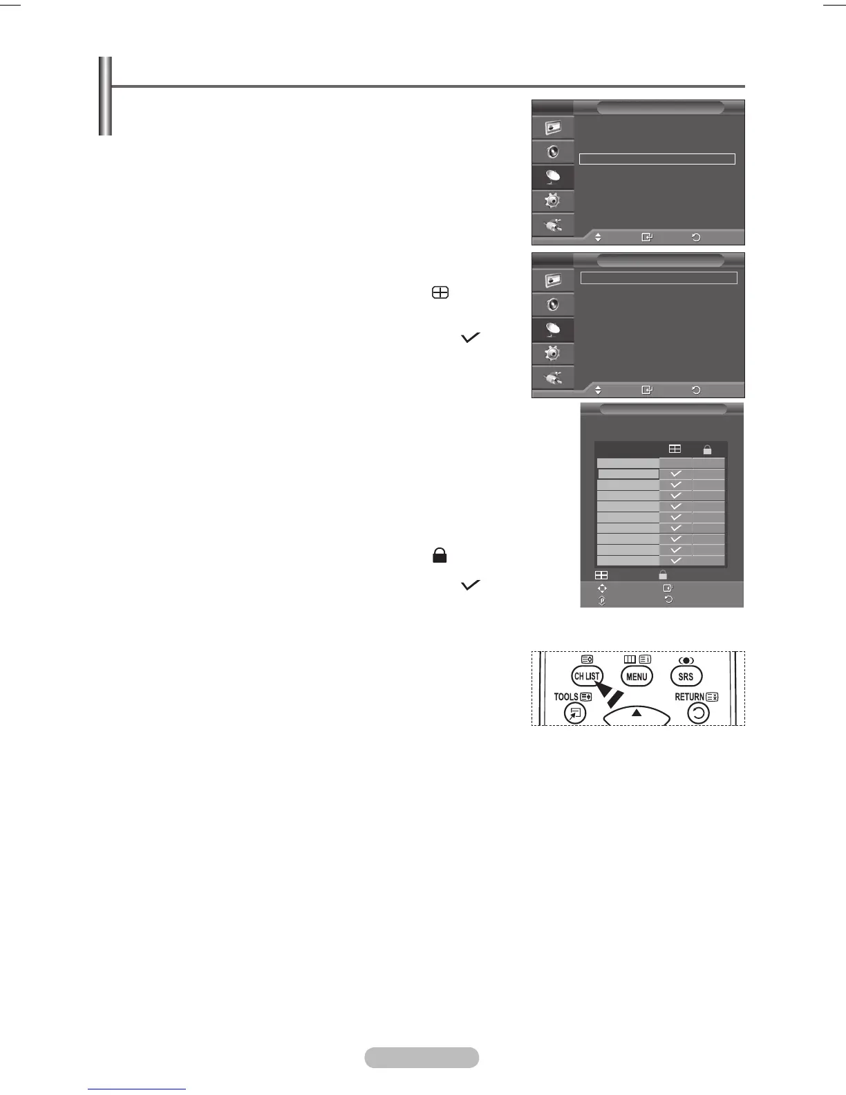 Stisknutím tlačítek ▲/▼/◄/► přejděte na pole ( ), vyberte kanál, který