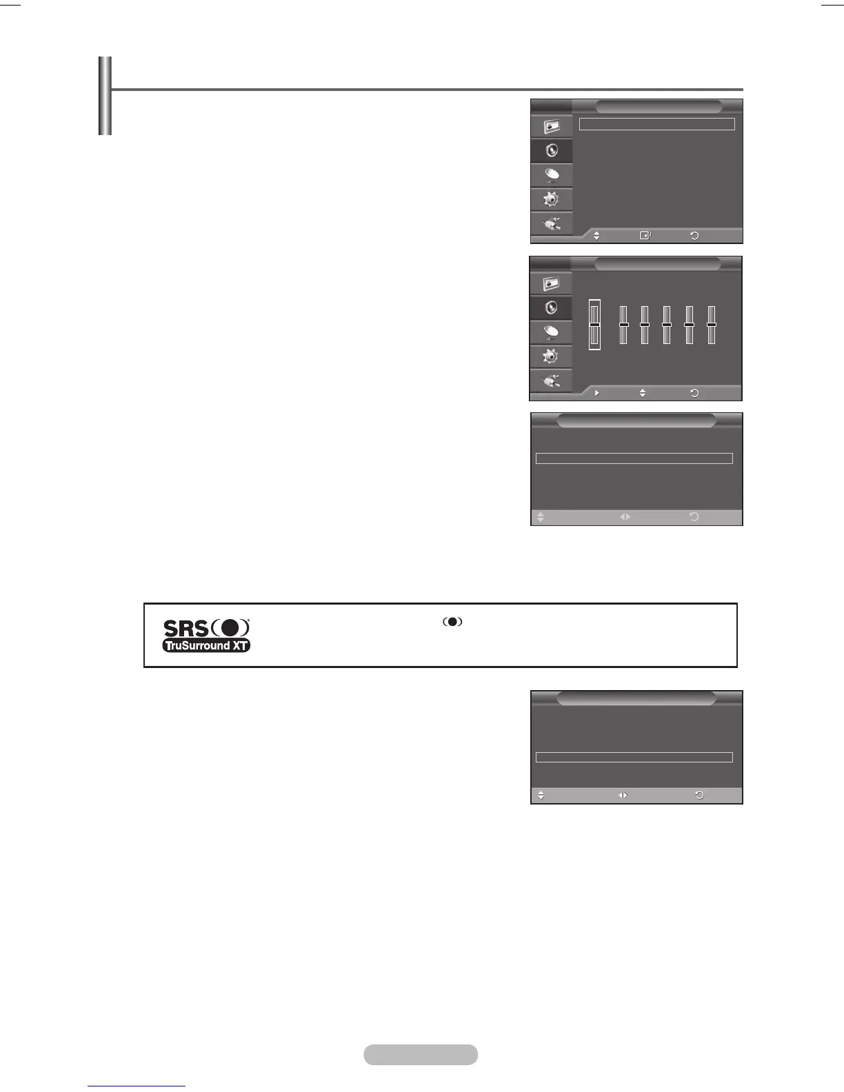 Dostupné možnosti: Režim, Ekvalizér, SRS TS XT, Automat.