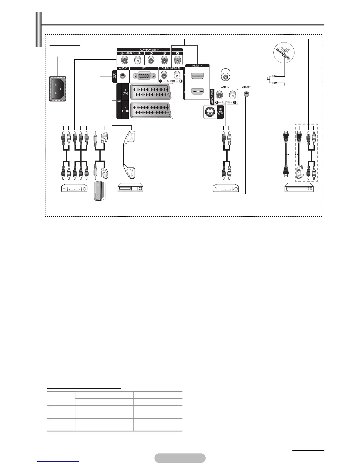 Whenever you connect an audio or video system to your set, ensure that all elements are