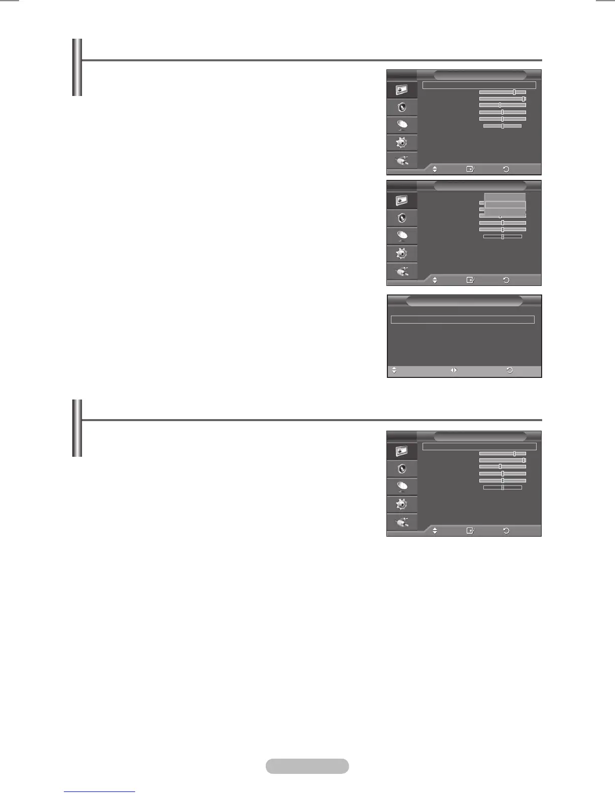 Свет ячейки – Контраст – Яркость – Четкость – Цвет – Тон