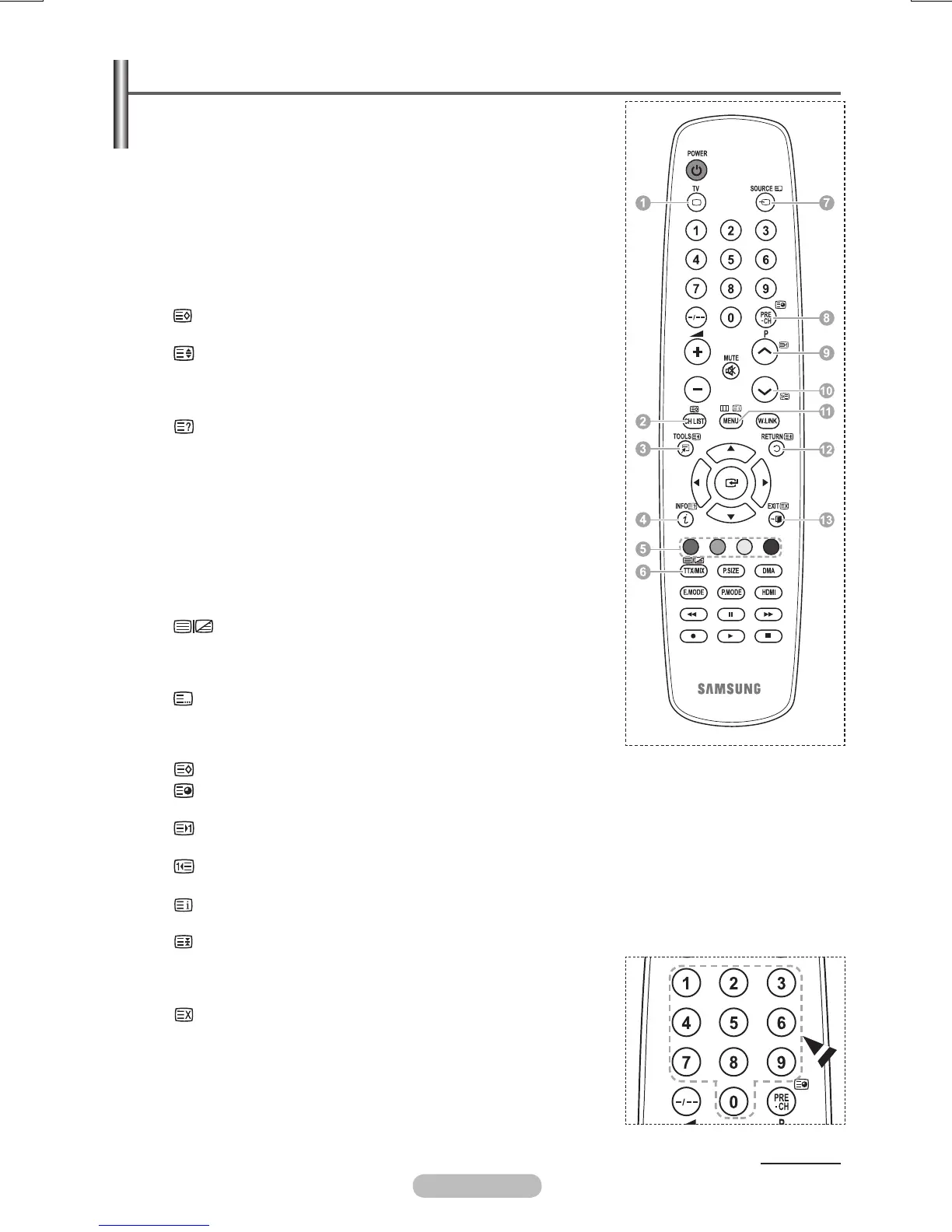 Press to select the teletext mode (LIST/FLOF).