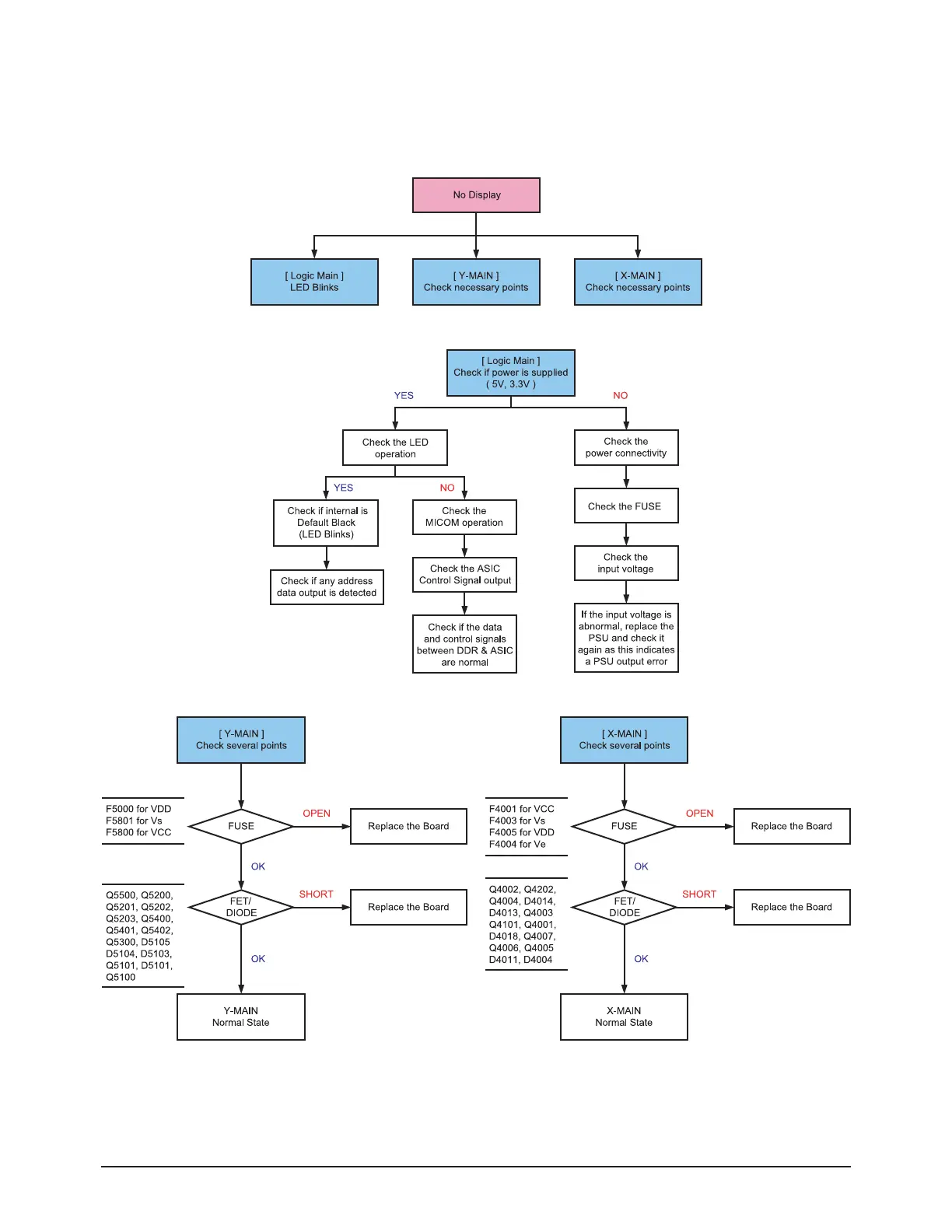 No Display is related with Y-MAIN, X-MAIN, Logic Main and so on.