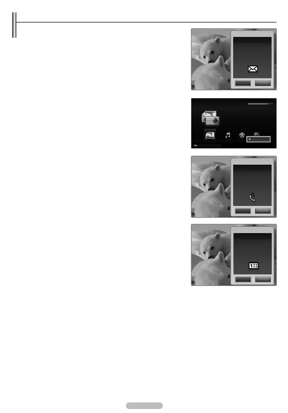 If a call arrives while you are watching TV, the alarm window appears.