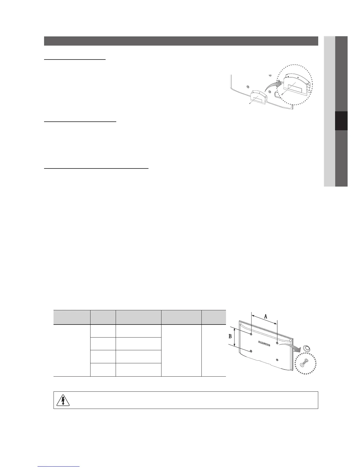 Monteer de wandbevestigingsset niet terwijl de tv is ingeschakeld. Dit kan resulteren in lichamelijk letsel door