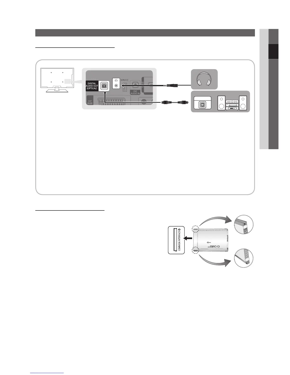 Če je digitalni avdio sistem povezan z vtičnico DIGITAL AUDIO OUT (OPTICAL), znižajte glasnost televizorja in sistema.