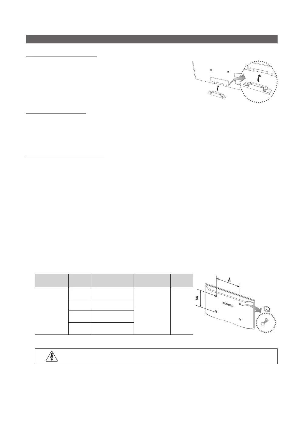 specifications. Screws that are too long may cause damage to the inside of the TV set.