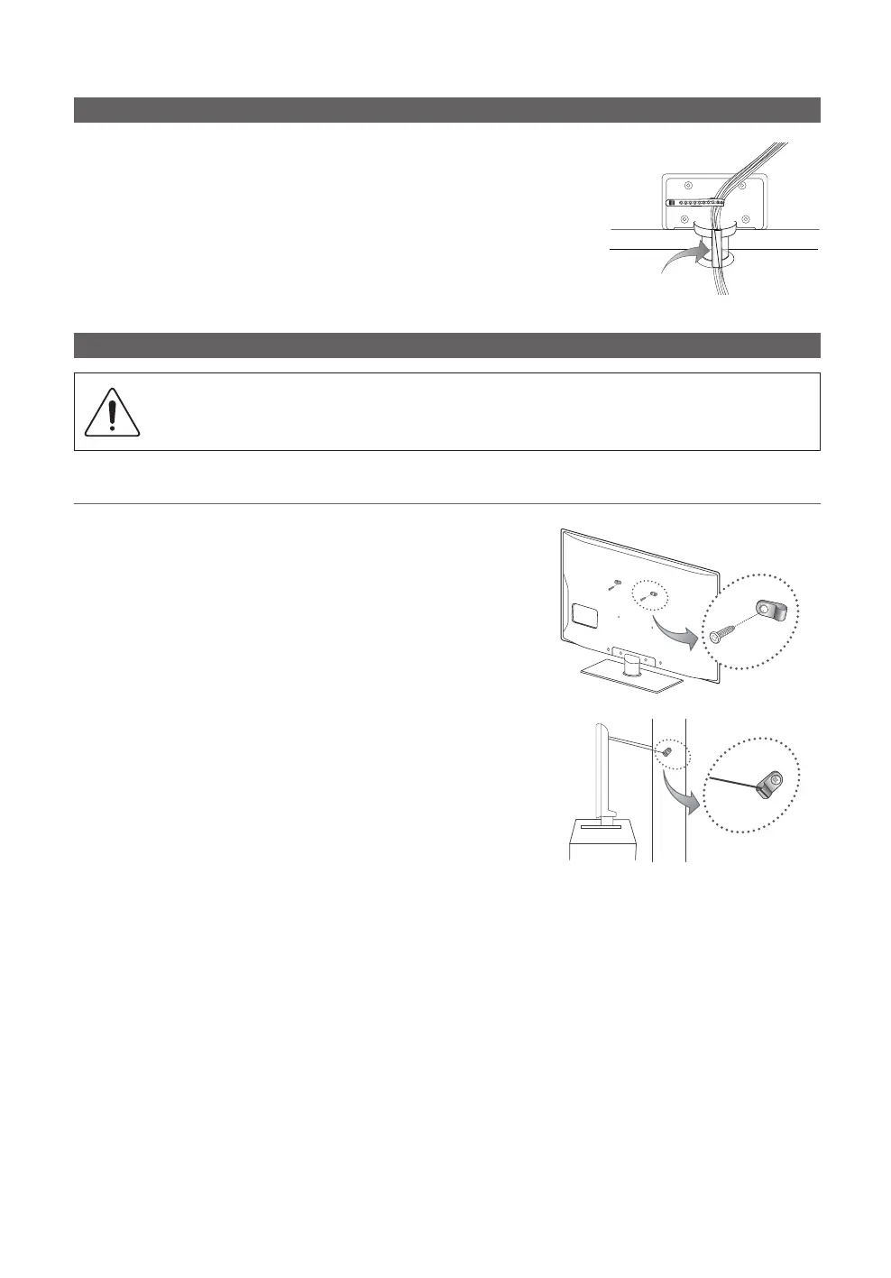 Caution: Pulling, pushing, or climbing onto the TV may cause the TV to fall. In particular, ensure that your