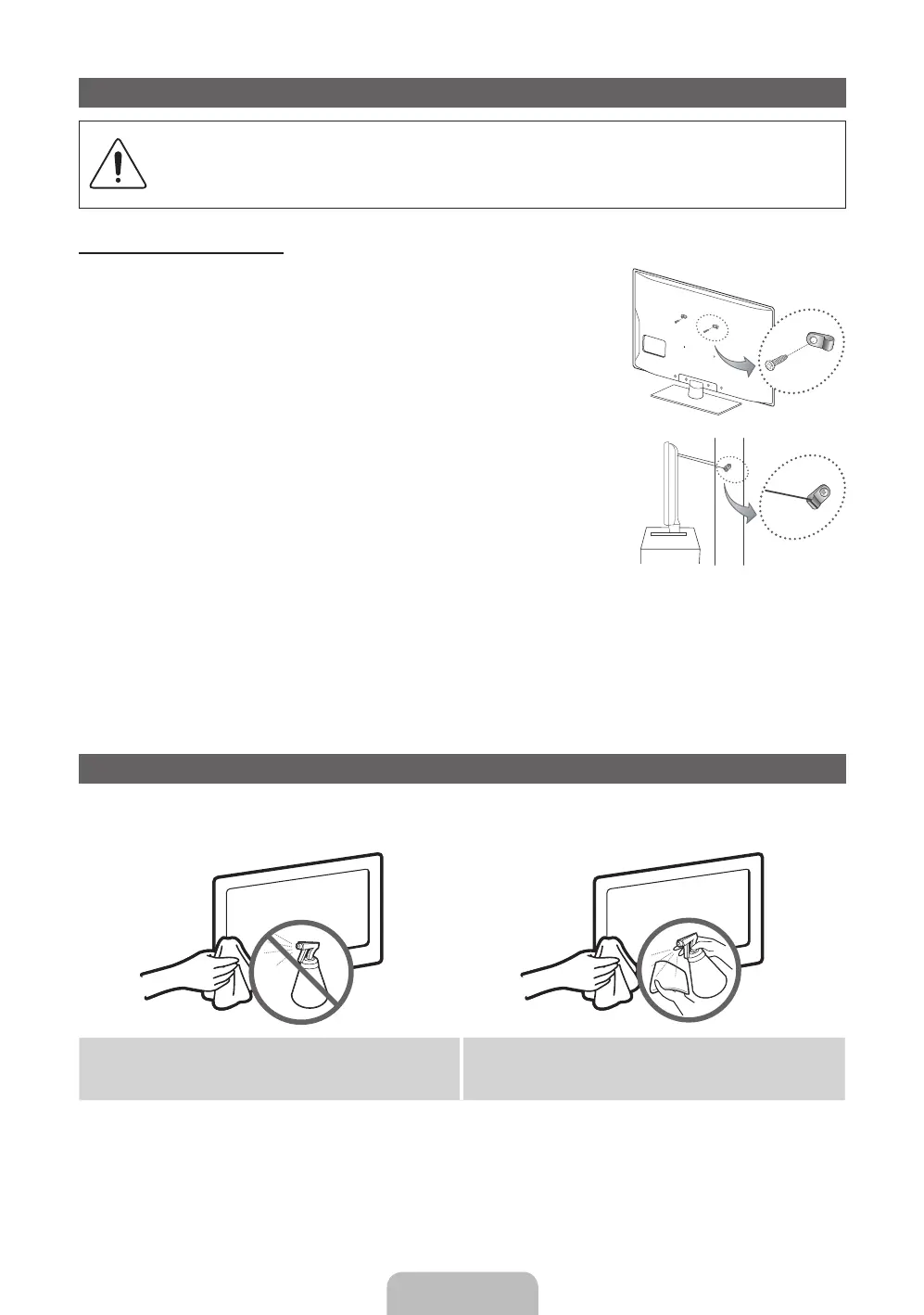 Caution: Pulling, pushing, or climbing onto the TV may cause the TV to fall. In particular, ensure