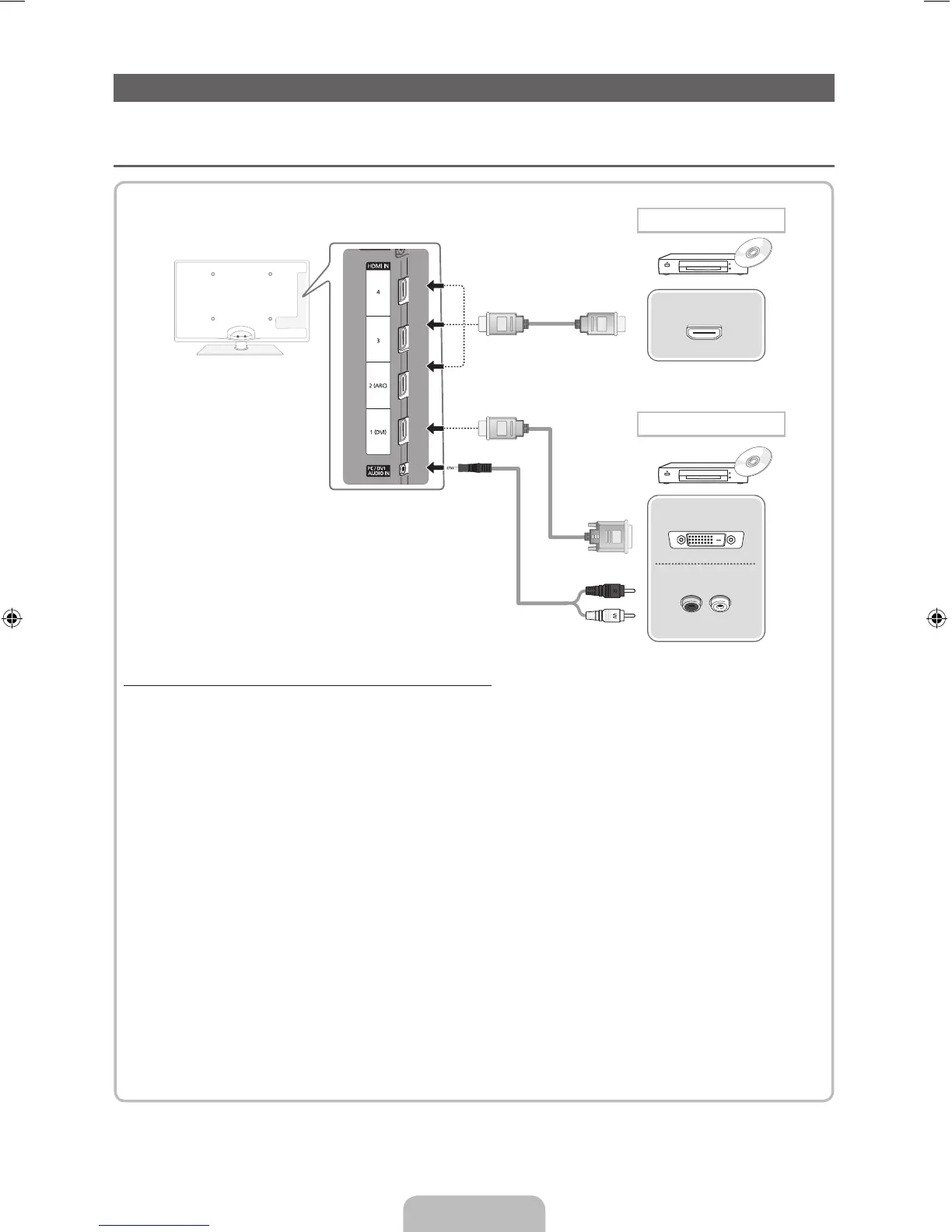 – To connect the TV to a digital device that does not support HDMI output, use an HDMI/DVI and