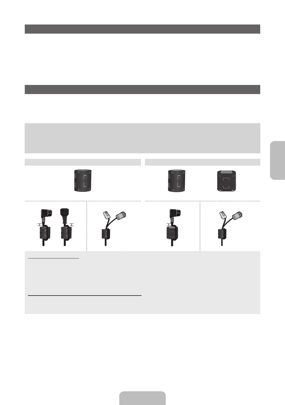 abra el núcleo de ferrita y sujételo al cable cerca del enchufe, tal como se muestra en la ilustración.