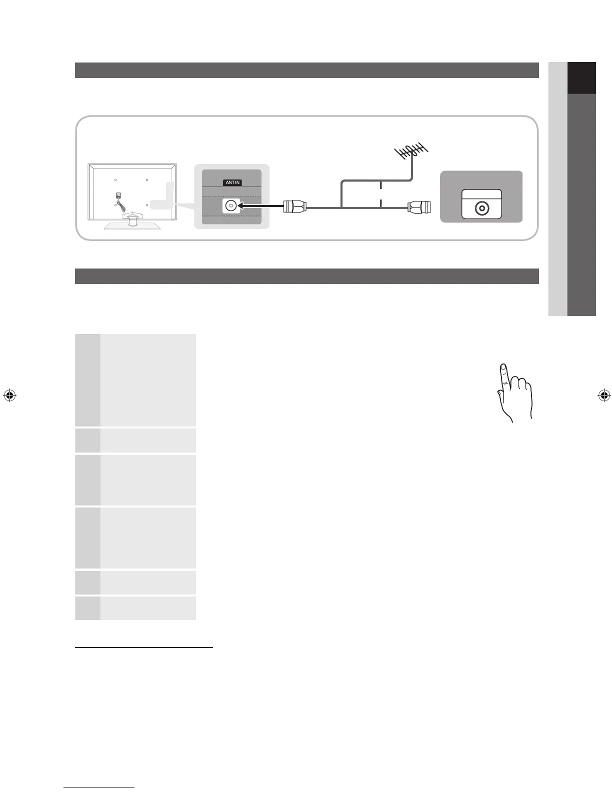 Preset: Connecting the power cord and antenna.